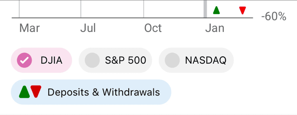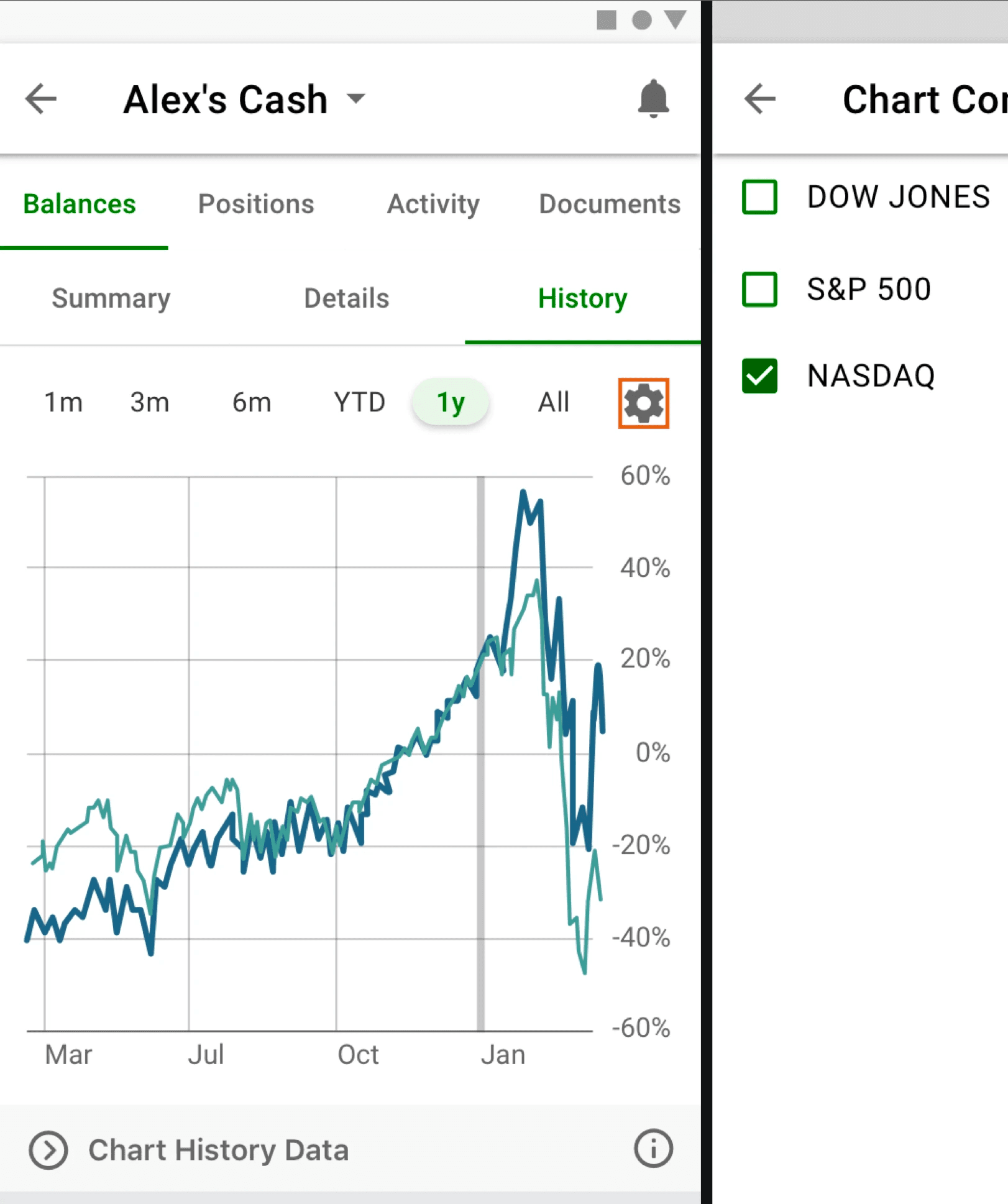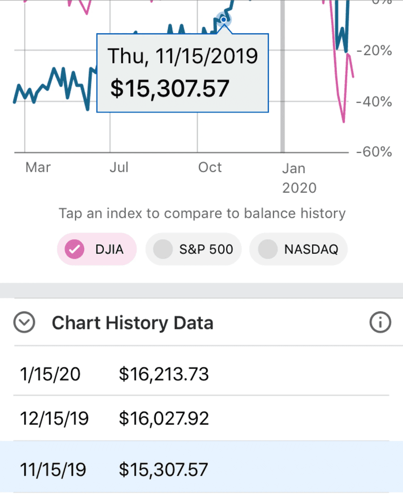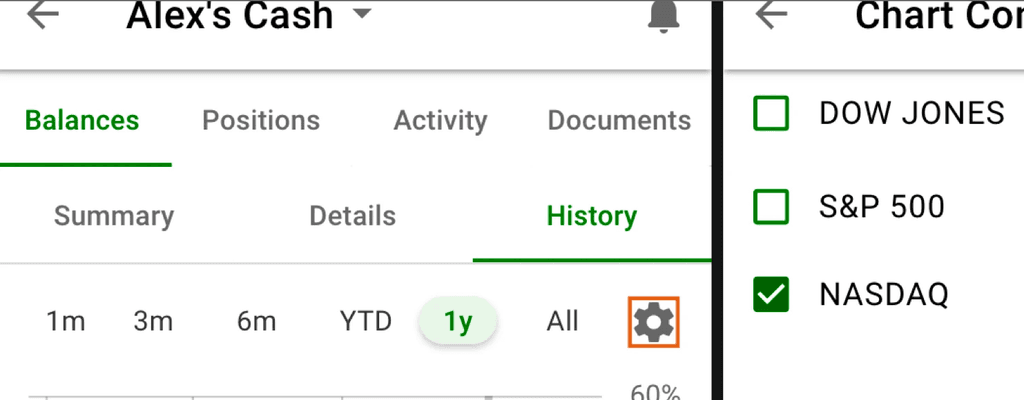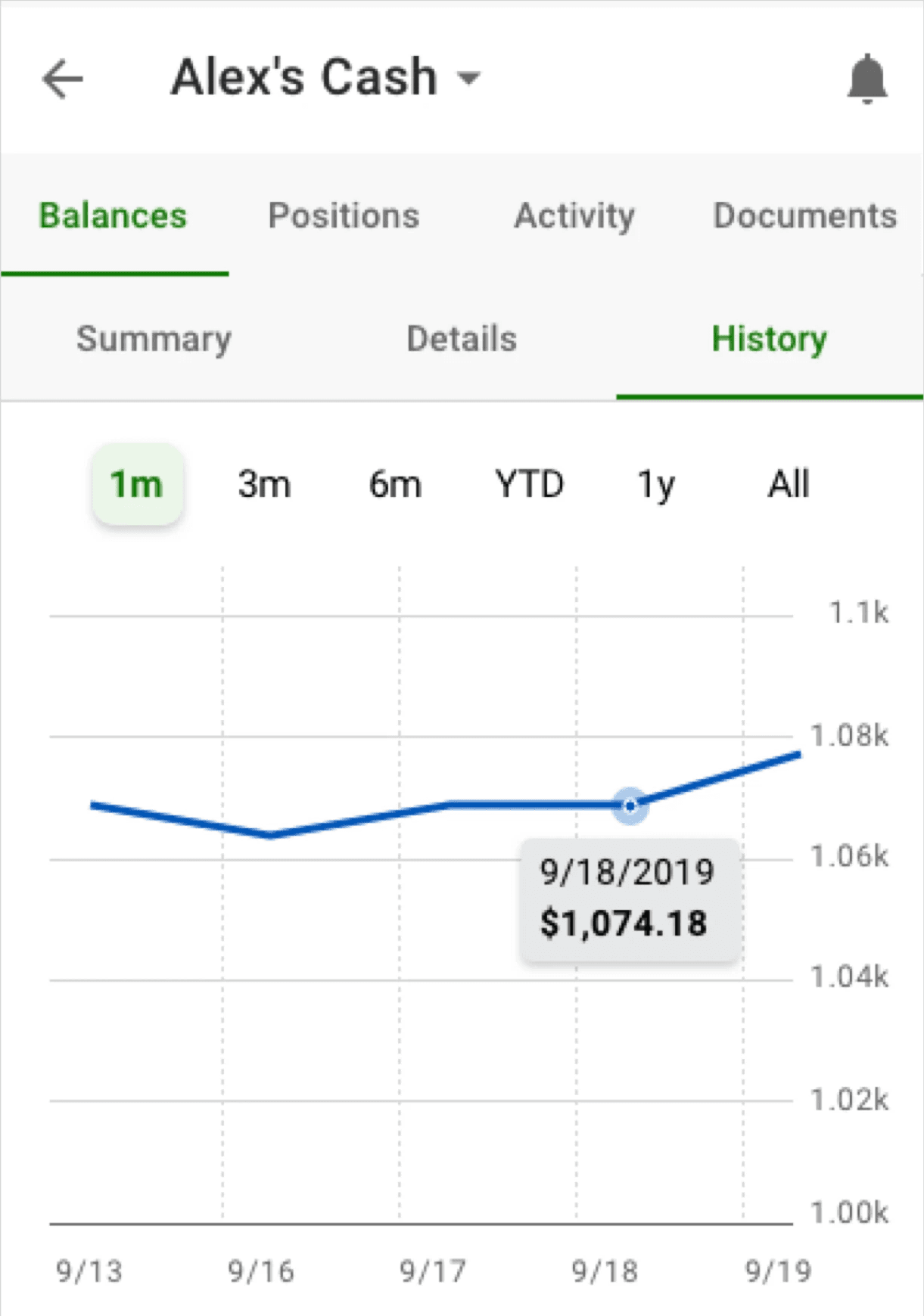 Determined that the main goal of the balance history chart for users was a visual way for them to quickly track their progress every time they opened the app. Further discussions revealed the chart helped users feel aware of their investment health and confidence.
